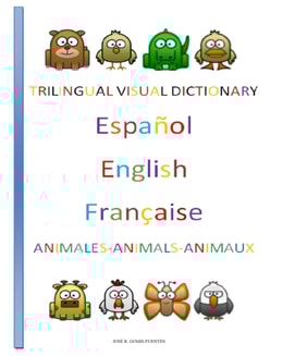 Trilingual Visual Dictionary. Animals in Spanish, English and French.