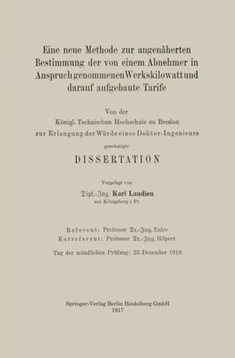 Eine neue Methode zur angenäherten Bestimmung der von einem Abnehmer in Anspruch genommenen Werkskilowatt und darauf aufgebaute Tarife
