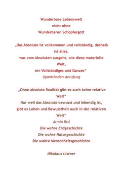 Schöpferische Natur und schöpferisches Universum nicht ohne absoluten spirituellen Urgrund