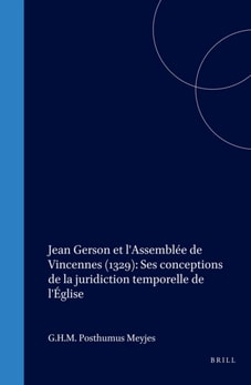 Jean Gerson et l'Assemblee de Vincennes (1329): Ses conceptions de la juridiction temporelle de l'Eglise
