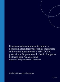 Guilielmi Groen van Prinsterer, ex pago Voorburg Hollandi, Lit. Hum. in Acad. Lugd. Bat. candidati, Commentatio de L. Coelio Antipatro historico belli Punici secundi, in certamine literario civium Academiarum Belgicarum die VIII.