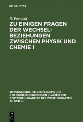 Zu einigen Fragen der Wechselbeziehungen zwischen Physik und Chemie I