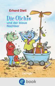 Klar, dass die Olchis nicht gerade erfreut sind, als ihre Müllkippe vom Amt für Umweltschutz auf einen Lastwagen verladen wird und auf Nimmerwiedersehen verschwindet.