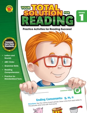 Your Total Solution for Reading Grade 1 will delight young children with activities that teach consonant and vowel sounds, using context clues, finding the main idea, compound words, ABC order, and more.