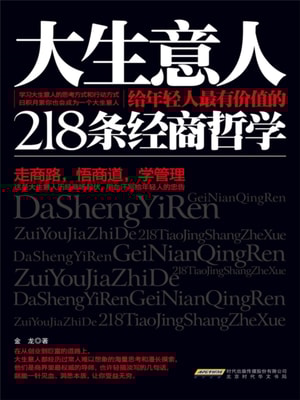 内容简介:从创业到巨富的道路上,大生意人都经历过常人难以想象的海量思考和漫长摸索,他们是商界里资深的导师,也许轻描淡写的几句话,就能一针见血、洞悉本质,让年轻人受益无穷。作者简介:金龙是一位具有丰富商业经验和深刻见解的作家。他是土生土长的温州人,体内流淌着温州人灼热的商业血脉,纵横驰骋商界二十多载,功成名就。其人生信条是 "商道即人道,懂得商道,才能真正悟懂财富的真谛,才能掌控财脉和赢得人生成功"。他目前担任一家传媒集团的总裁,经商之余,潜心研究世界各地温州商人的经商特色,以及市场营销学、管理学、商场心理学等,结合自己多年的实践和体悟著书立说。代表作有《温商是怎样赚钱的》《男人成功前的 50 个输不起》《温州商道》《30 几岁决定男人的成功》《打好工才能创好业》等。