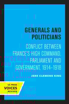 Generals & Politicians: Conflict Between France's High Command, Parliament and Government, 1914-1918 by Jere Clemens King offers a penetrating study of how France's democratic institutions clashed and cooperated with military command during the First World War.