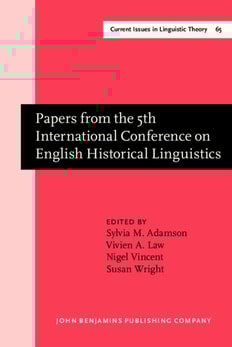 This volume is a collection of articles based on papers presented at the 5th International Conference on English Historical Linguistics at Cambridge in 1987.