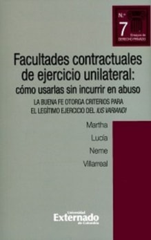El libro se propone abordar un instrumento que suscita gran interés en el derecho contractual contemporáneo: el otorgamiento de facultades de ejercicio unilateral, en cuanto atiende la necesidad de hacer más ágil la contratación, de adaptar el negocio a circunstancias sobrevenidas que alteren el equilibrio del contrato originalmente convenido, de administrar los riesgos, de flexibilizar en general las condiciones del negocio acercándolo con mayor precisión a las necesidades de las partes y de los mercados en los que estos se desarrollan, e incluso a las características del tipo negocial elegido, cuya plena realización puede comportar la necesidad de cierta libertad en el manejo de los elementos estructurales del mismo.