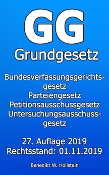 Dieses Buch enthält das Grundgesetz für die Bundesrepublik Deutschland (GG), das Gesetz über das Bundesverfassungsgericht (BVerfGG), Gesetz über die politischen Parteien (PartG), Gesetz über die Befugnisse des Petitionsausschusses des Deutschen Bundestages (GGArt45cG) und das Gesetz zur Regelung des Rechts der Untersuchungsausschüsse des Deutschen Bundestages (PUAG).