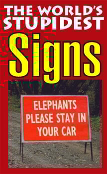 Gathered from offices, hotels, shops and roadsides, this collection of seemingly ridiculous signs offers such examples as: Elephants please stay in your car; If you cannot read this, this leaflet will tell you how to get lessons; and Bargain basement upstairs, as well as - On a cruise ship: Please do not lean on the widow.