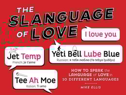 The Slanguage of Love is a new visual guide in the best-selling Slanguage series, featuring more than two dozen phrases centered around the theme of love, with each phrase translated into ten different languages: Spanish, French, Italian, Portuguese, German, Russian, Greek, Chinese, Japanese, and Korean.