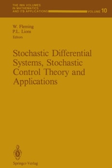 This IMA Volume in Mathematics and its Applications STOCHASTIC DIFFERENTIAL SYSTEMS, STOCHASTIC CONTROL THEORY AND APPLICATIONS is the proceedings of a workshop which was an integral part of the 1986-87 IMA program on STOCHASTIC DIFFERENTIAL EQUATIONS AND THEIR APPLICATIONS.