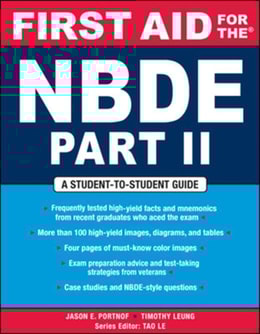 One-stop NBDE preparation -- written by students who aced the examFirst Aid for the NBDE Part 1, 3e is a concise review for the exam, containing hundreds of high-yield facts and mnemonics, and more than 200 photos and illustrations.
