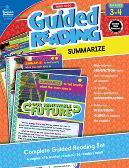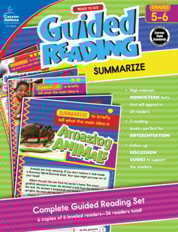 Guided Reading: Summarize for first and second grades enhances language arts lesson plans with 36 readers-six sets of two each for below-, on-, and above-level student readers.
