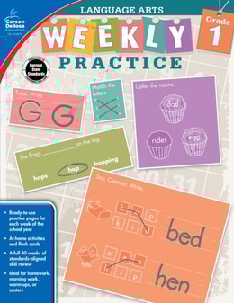 Weekly Practice: Language Arts for grade 1 provides daily practice for key concepts such as sight words, beginning sounds, ending sounds, parts of speech, story elements, and more.