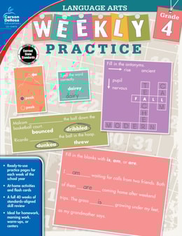 Weekly Practice: Language Arts for grade 4 provides daily practice for key concepts such as spelling, root words, affixes, main idea, sentence fragments, writing, and more.