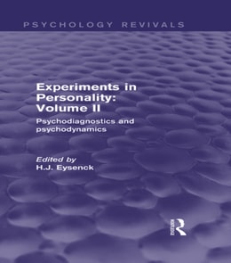 Originally published in 1960, the two volumes of Experiments in Personality report a number of experiments in psychogenetics, psychopharmacology, psychodiagnostics, psychometrics and psychodynamics, all of which formed part of the programme of research which had been developing from the late 1940s at the Maudsley Hospital.