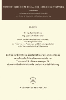 Beitrag zur Ermittlung gesetzmäßiger Zusammenhänge zwischen der Schneidengeometrie von Trenn- und Schlitzwerkzeugen für nichtmetallische Werkstoffe und der Antriebsleistung