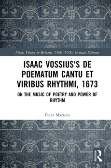 Dr Peter Martens provides the first complete edited English translation of, and commentary on, Issac Vossius's De poematum cantu et viribus rythmi, a late seventeenth-century work of Continental musical humanism, all the more interesting for being published in England and dedicated to royalist Henry Bennett, Duke of Arlington.